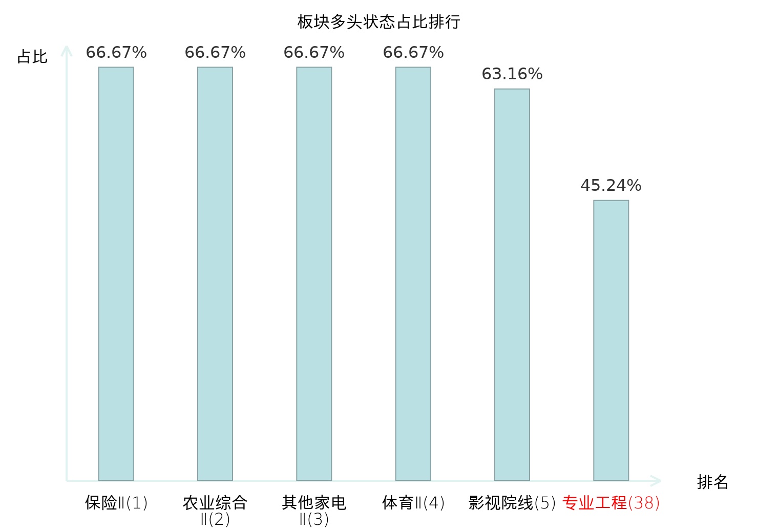 全市场所有行业板块中主力多头状态占比排名中,保险Ⅱ板块位居第一。冶钢原料板块名次提升最快,较昨日上升53位。