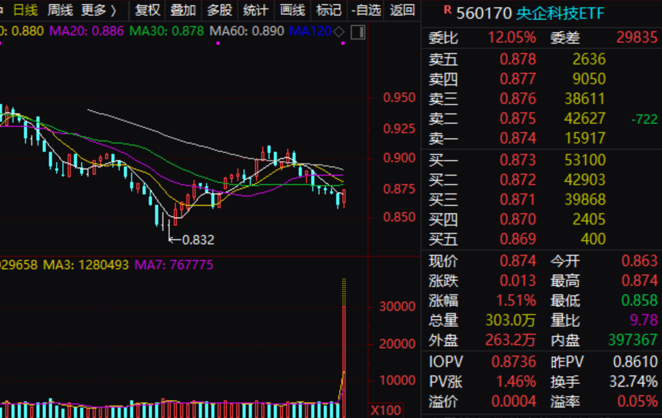今天下午,多只ETF突然放量,其中,最为明显的是央企创新驱动ETF和央企科技ETF,还有一只较为“隐秘”的宽基——中证1000亦在半小时内出现明显放量。