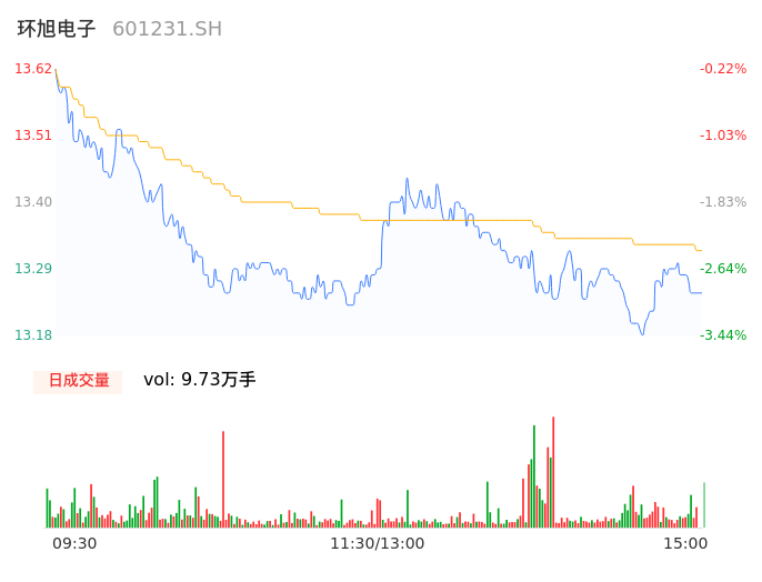 04月19日,环旭电子收报13.24,股价涨幅-3.00%,成交金额1.30亿元,换手率0.44%。