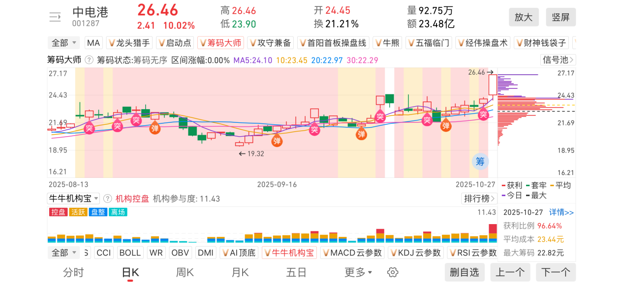 2)20251027-中电港-【筹码大师】和【牛牛机构宝】-近期出现弹信号且底部量柱由绿转红