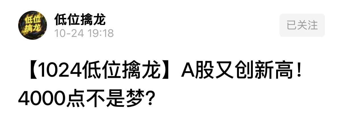 今天最高3999.07,就差一个点就4000了,新闻媒体写好的4000点的稿子估计明天就该发了。明天稍微高开一点点就4000了。问题是十年前4000点抄底的兄弟们回本了么?