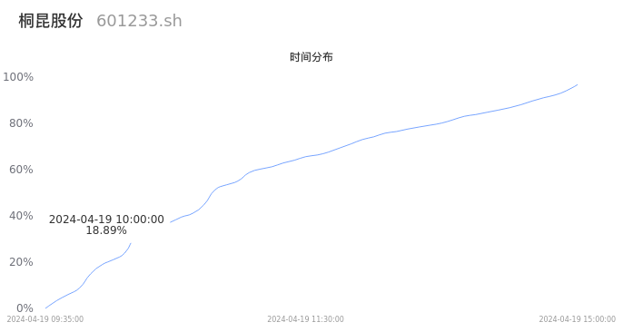 601233桐昆股份2024年04月19日成交20.44万手,成交金额2.93亿元,相较昨日放量5.74万手,换手率0.90%,成交清淡。