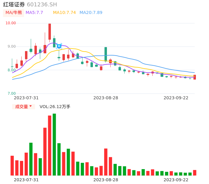 值得注意的是:2023年09月方正证券的曹柳龙分析师,首次发布关于红塔证券的研究报告,标题为:红塔证券(601236):2Q投资业务承压明显 看好市场回暖下自营业务弹性。