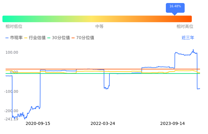 红塔证券当前市现率为-83.71,在所属的证券中,市现率排23,前5名分别为、申万宏源市现率1.82、兴业证券市现率2.68、东北证券市现率3.39、广发证券市现率3.84、国泰君安市现率4.68。红塔证券当前市现率为-83.71,超过近3年16.48%的历史数据。