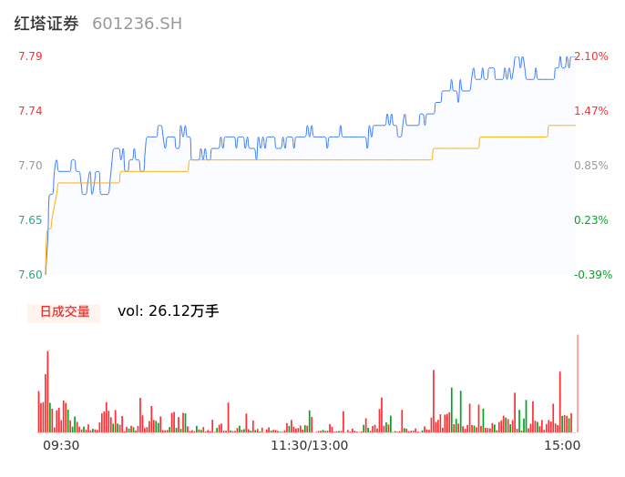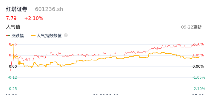 09月22日,红塔证券收报7.79,股价涨幅2.10%,成交金额2.02亿元,换手率0.55%。