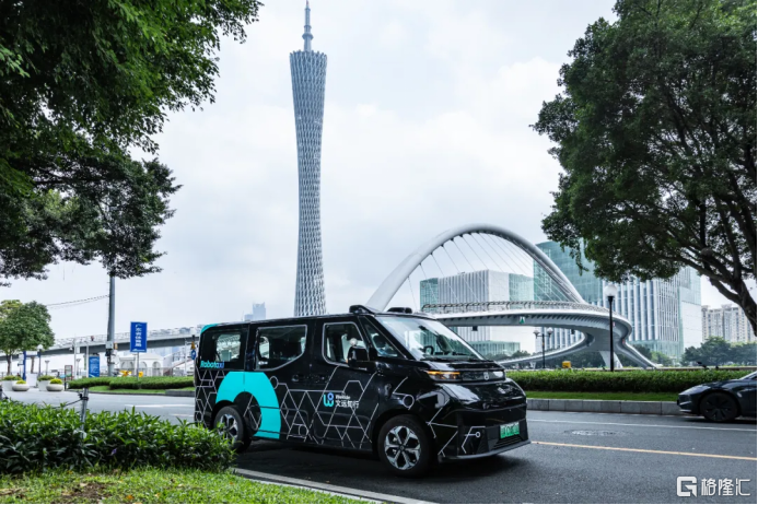 (文远知行自动驾驶车型GXR在广州塔下行驶)
