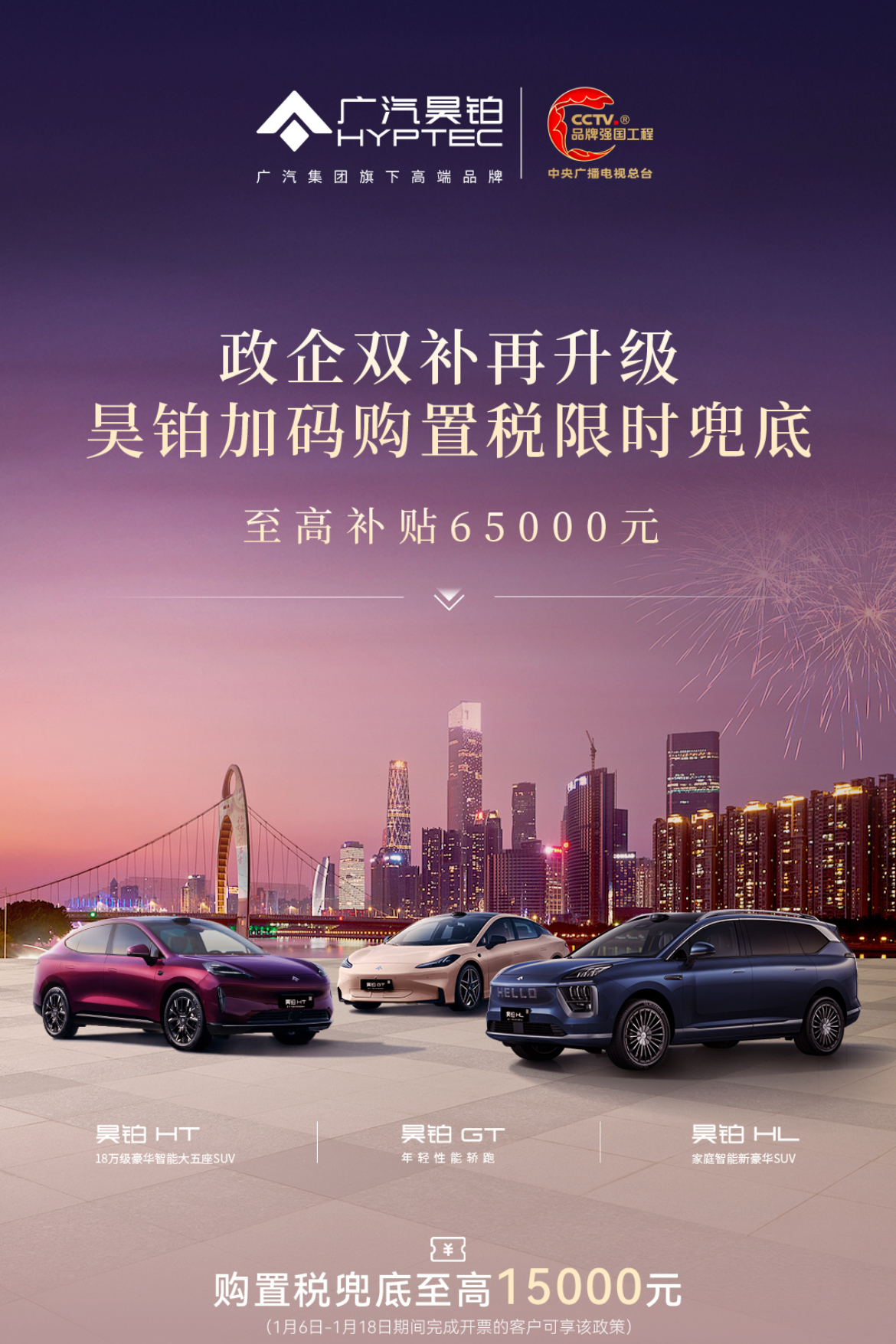 上证报中国证券网讯1月6日,广汽集团介绍,近日,广汽昊铂购车权益再加码,不仅以“政企双补”开启新年购车礼遇优惠,还围绕用户全周期拥车体验持续升级服务,并再加码新能源购置税兜底政策,综合补贴最高可达65000元。