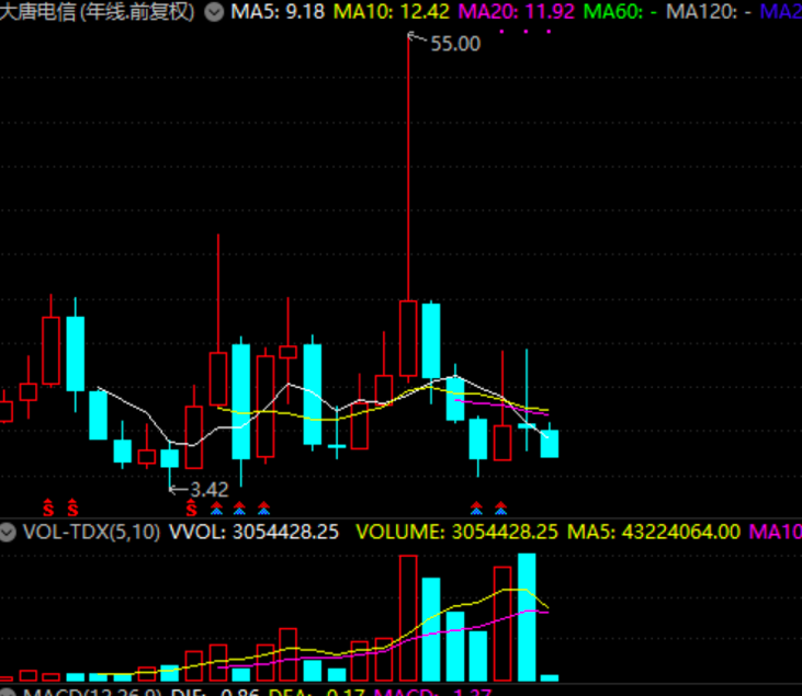 公司财务数据显示,算上2020年,大唐电信扣非后净利已连亏多年。股价方面,公司于2015年股价一度高达55元,最新价不足7元,累计跌幅超过87%。
