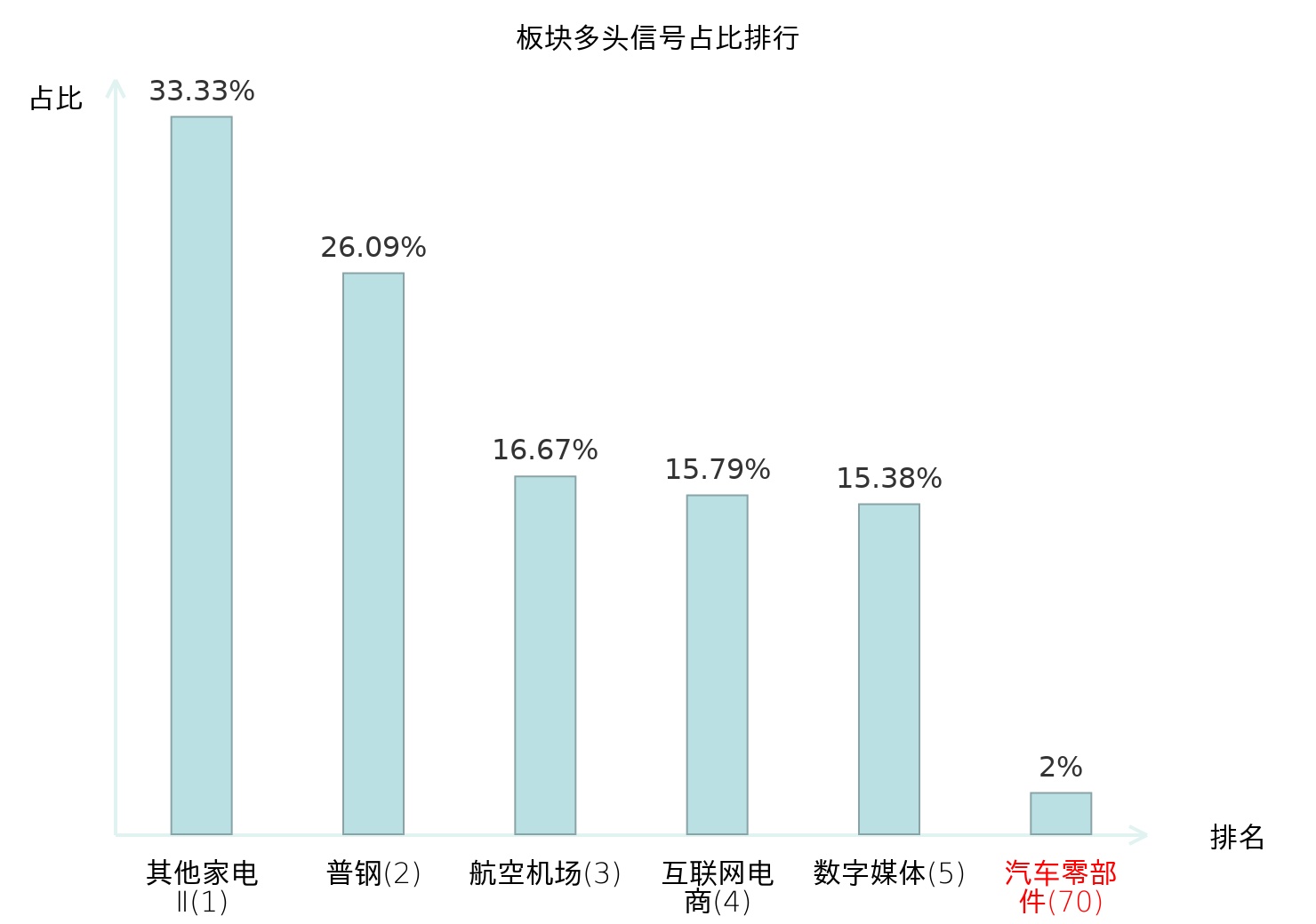 从主力宝信号数据分析,英利汽车所属的汽车零部件板块中共有5只股票发出主力多头信号,主力多头信号占比在全行业中排名第70位,较昨日下降41位。排名较高表明主力在该板块的买入意愿较强,但此次排名下降可能反映了主力对该板块态度的变化。全市场所有行业板块中,其他家电Ⅱ板块的主力多头信号占比最高,位居第一;其他家电Ⅱ板块名次提升最快,较昨日上升129位。这些变动揭示了不同行业间主力资金偏好的变化,为投资者理解当前市场的动态和趋势提供了重要参考。