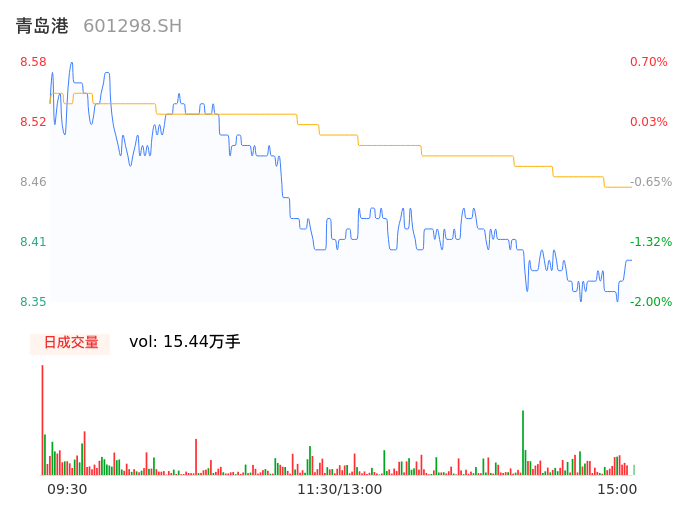 04月22日,青岛港收报8.37,股价涨幅-1.76%,成交金额1.31亿元,换手率0.29%。