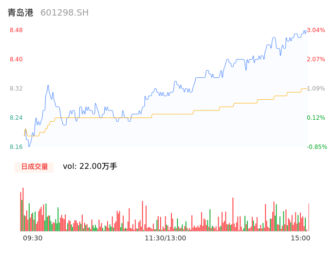 04月17日,青岛港收报8.48,股价涨幅3.04%,成交金额1.83亿元,换手率0.41%。
