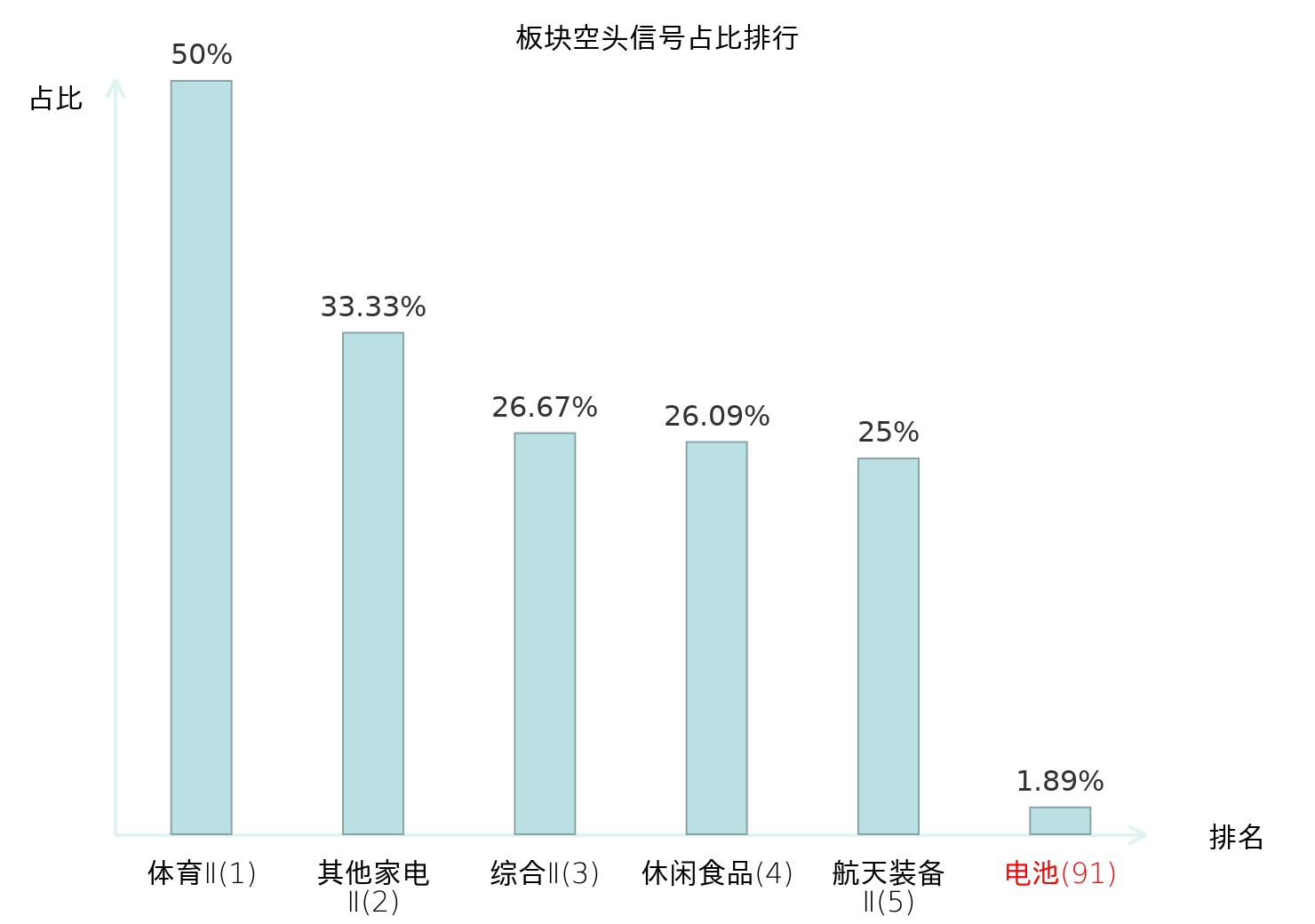 全市场所有行业板块中主力空头信号占比排名中,体育Ⅱ板块位居第一。综合Ⅱ板块名次提升最快,较昨日上升113位。