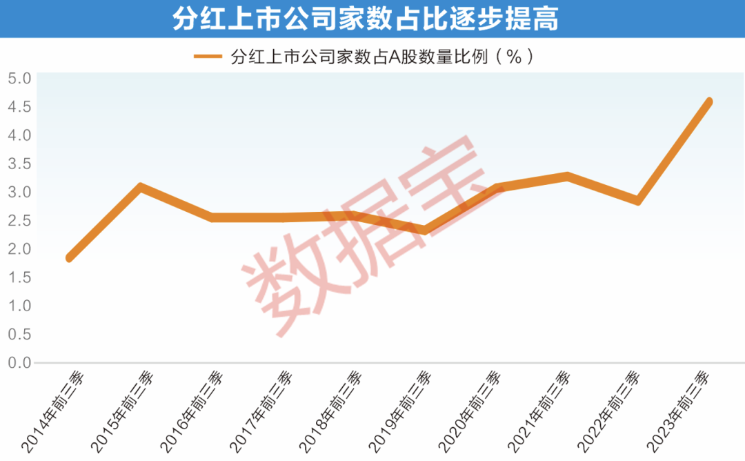 为响应政策号召,上市公司随即密集推出分红计划。证券时报·数据宝统计,今年三季报有50家公司现金分红,数量及占比均创历史同期新高。