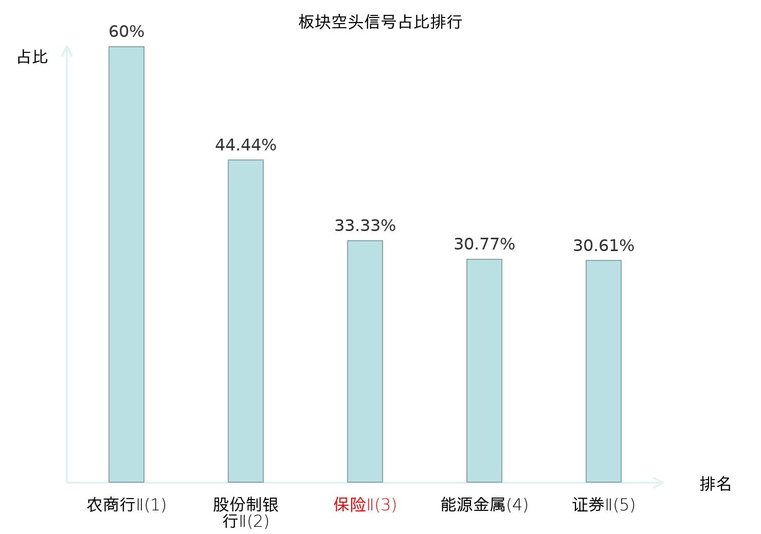 全市场所有行业板块中主力空头信号占比排名中,农商行Ⅱ板块位居第一。证券Ⅱ板块名次提升最快,较昨日上升119位。
