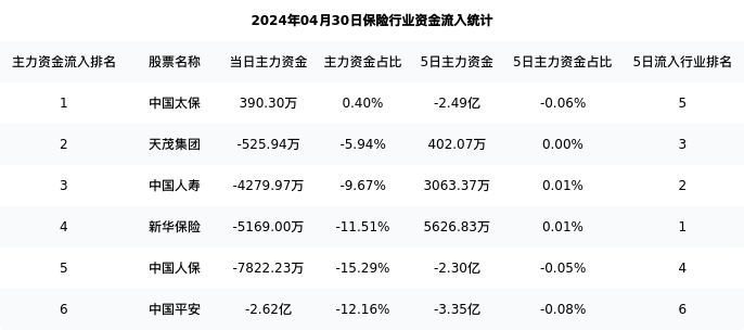 中国平安今日净流出2.62亿元,主力占比12.16%,在行业内排名:6/6;5日净流出3.35亿元,主力占比0.08%,在行业内排名:6/6。