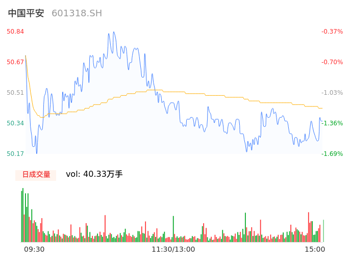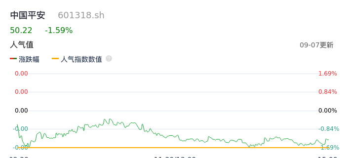 09月07日,中国平安收报50.22,股价涨幅-1.59%,成交金额20.33亿元,换手率0.37%。