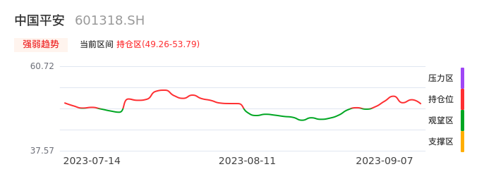 我们来看一下该股的九方特色指标强弱趋势的情况:中国平安自08月31日从观望区上穿到持仓区。股价近期在多头区域回调整理。后续重点关注多空分界点的争夺:49.26元。如未能有效站稳则可能重新回到空头行情。