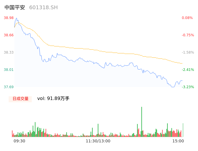 04月12日,中国平安收报37.78,股价涨幅-3.00%,成交金额35.03亿元,换手率0.85%。