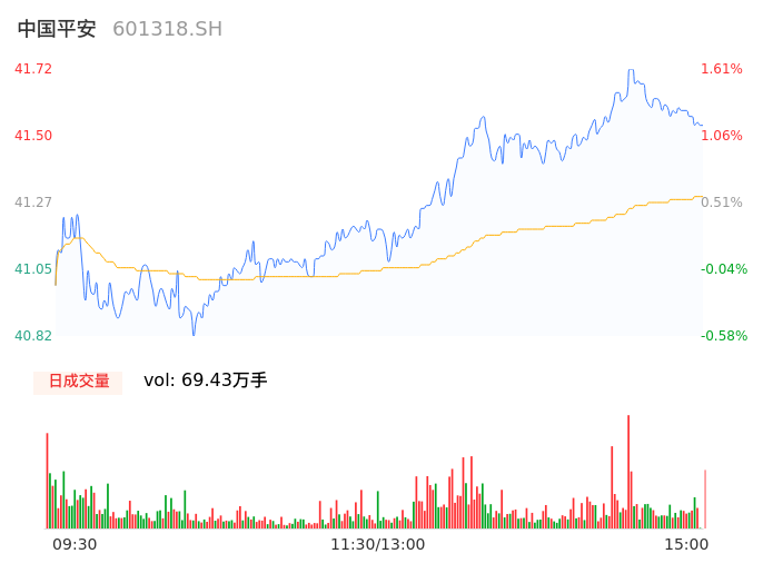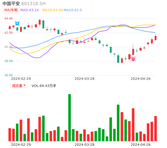 04月26日,中国平安收报41.53,股价涨幅1.14%,成交金额28.67亿元,换手率0.65%。