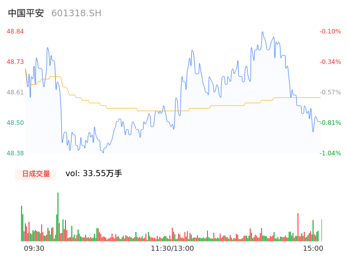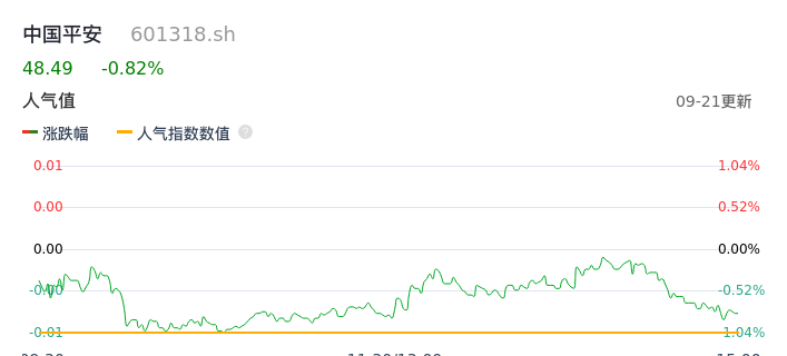 09月21日,中国平安收报48.49,股价涨幅-0.82%,成交金额16.30亿元,换手率0.31%。