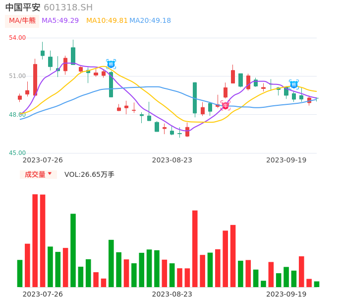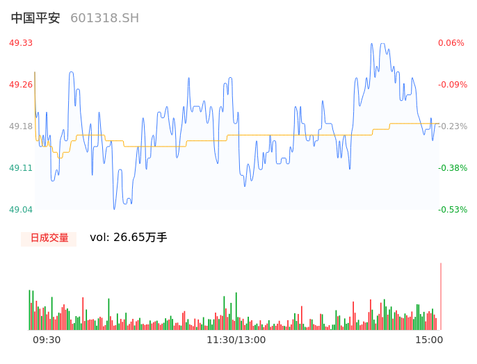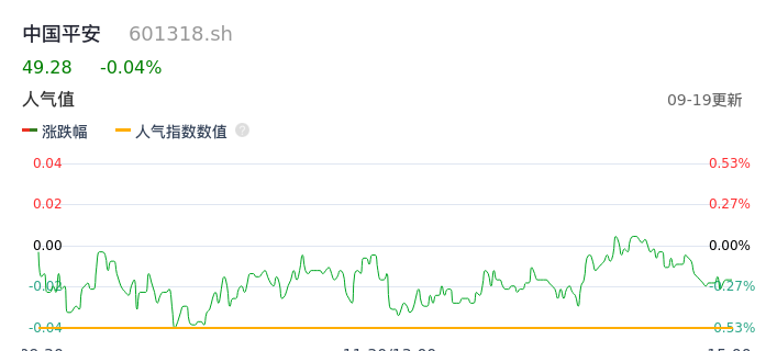 09月19日,中国平安收报49.28,股价涨幅-0.04%,成交金额13.11亿元,换手率0.25%。