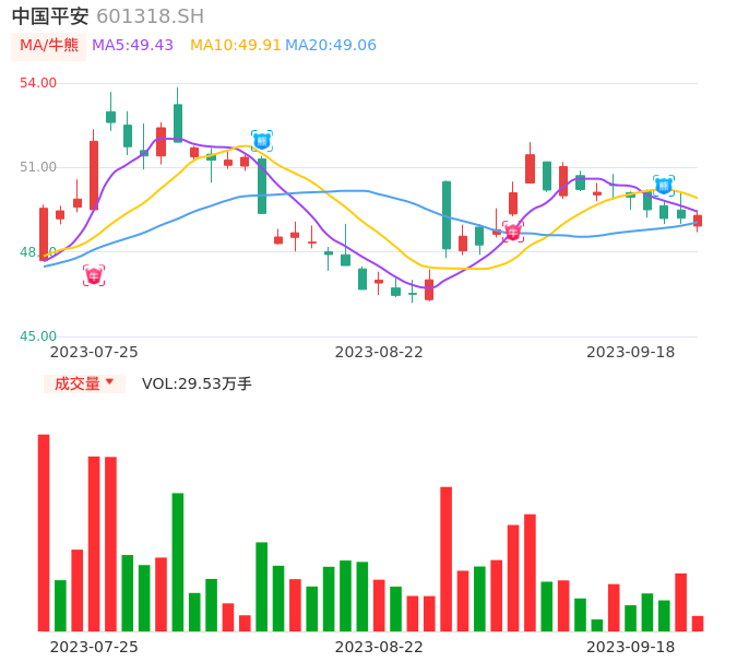 09月18日,中国平安收报49.30,股价涨幅0.20%,成交金额14.52亿元,换手率0.27%。