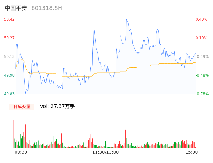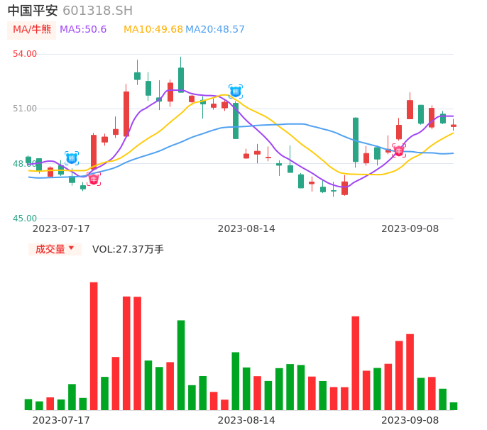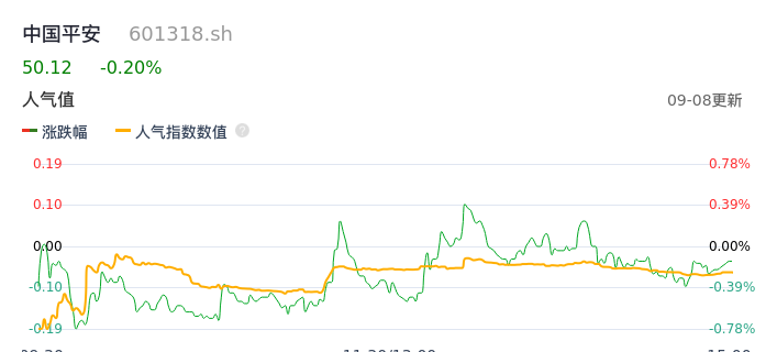 09月08日,中国平安收报50.12,股价涨幅-0.20%,成交金额13.70亿元,换手率0.25%。