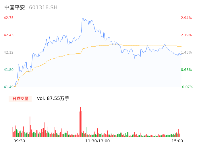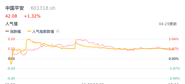 04月29日,中国平安收报42.08,股价涨幅1.32%,成交金额36.97亿元,换手率0.81%。