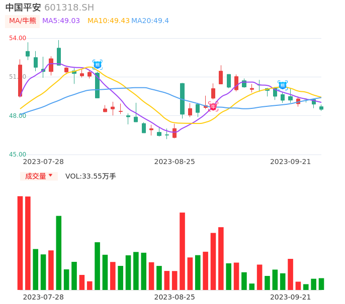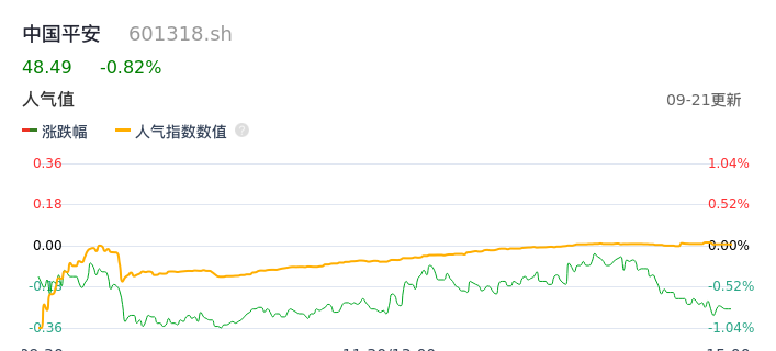 09月21日,中国平安收报48.49,股价涨幅-0.82%,成交金额16.30亿元,换手率0.31%。