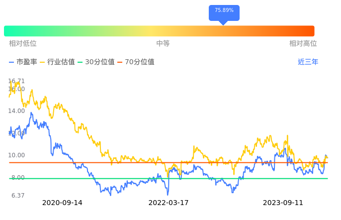 2023年09月11日,中国平安上涨0.48%收于50.36,今日成交金额24.72亿元。下文将从市盈率PETTM、市净率PB、市现率3个角度去分析公司估值情况。