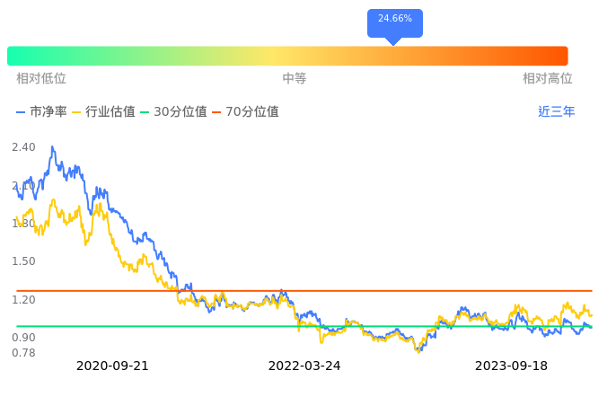中国平安当前市净率PB为0.98,在所属的保险中,市净率PB排2,前五名分别为天茂集团市净率0.77、中国平安市净率0.98、新华保险市净率1.05、中国人保市净率1.09、中国太保市净率1.17。中国平安当前市净率PB为0.98,超过近3年24.66%的历史数据。