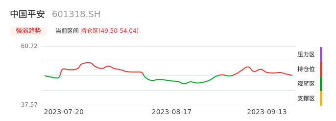 我们来看一下该股的九方特色指标强弱趋势的情况:中国平安自08月31日从观望区上穿到持仓区。股价近期在多头区域回调整理。后续重点关注多空分界点的争夺:49.50元。如未能有效站稳则可能重新回到空头行情。