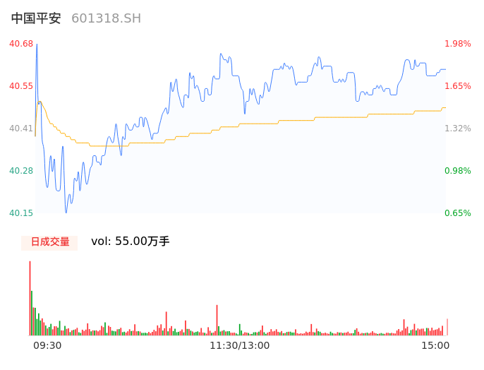 04月24日,中国平安收报40.60,股价涨幅1.78%,成交金额22.26亿元,换手率0.51%。
