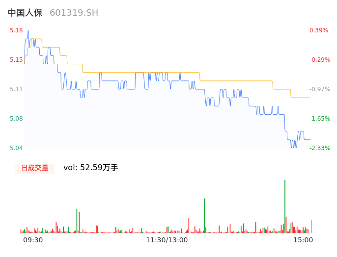 04月12日,中国人保收报5.05,股价涨幅-2.13%,成交金额2.68亿元,换手率0.15%。