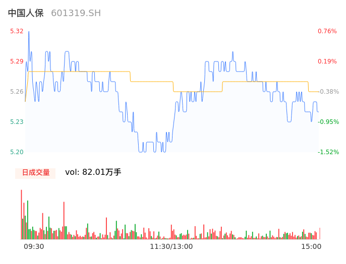 04月16日,中国人保收报5.24,股价涨幅-0.76%,成交金额4.32亿元,换手率0.23%。
