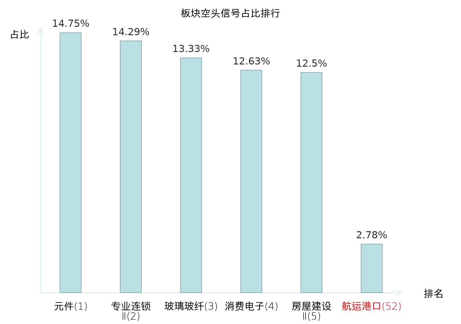 全市场所有行业板块中主力空头信号占比排名中,元件板块位居第一。电机Ⅱ板块名次提升最快,较昨日上升111位。