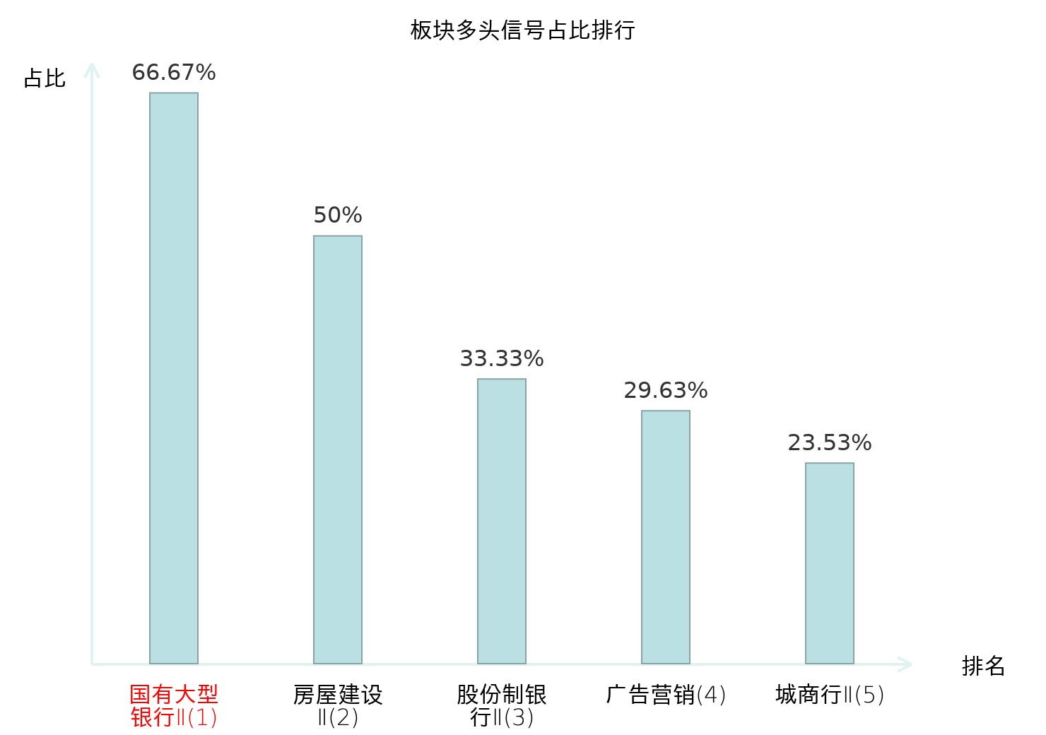 全市场所有行业板块中主力多头信号占比排名中,国有大型银行Ⅱ板块位居第一。国有大型银行Ⅱ板块名次提升最快,较昨日上升122位。