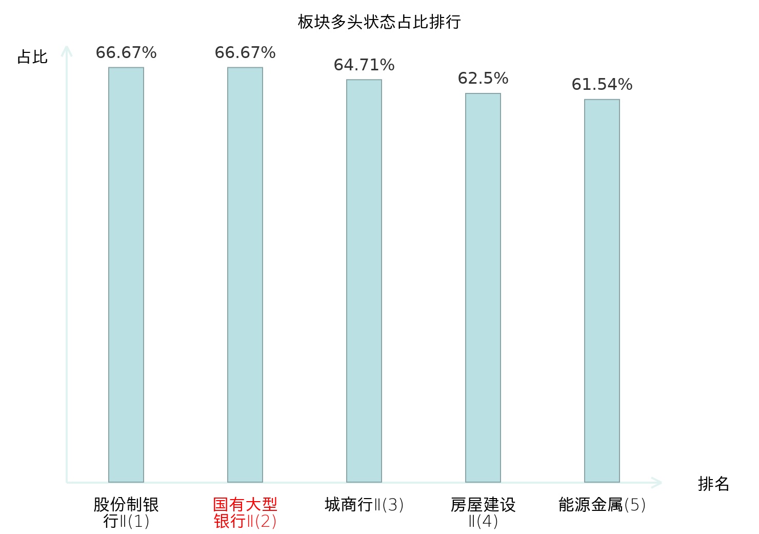 全市场所有行业板块中主力多头状态占比排名中,股份制银行Ⅱ板块位居第一。其他家电Ⅱ板块名次提升最快,较昨日上升102位。