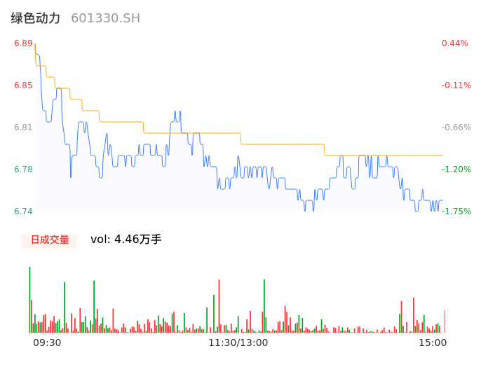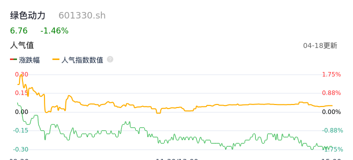 04月18日,绿色动力收报6.76,股价涨幅-1.46%,成交金额3031.07万元,换手率0.45%。