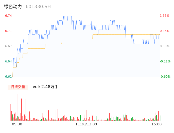 04月25日,绿色动力收报6.68,股价涨幅0.45%,成交金额1658.43万元,换手率0.25%。