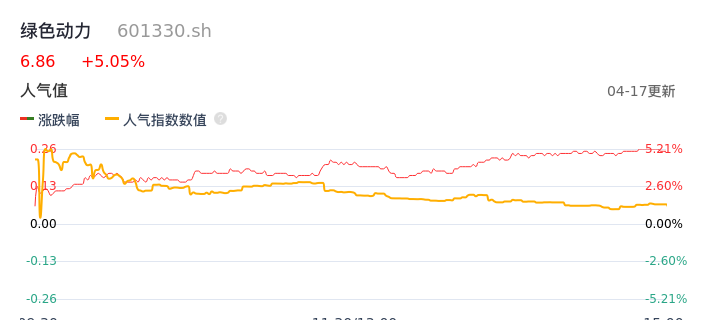 04月17日,绿色动力收报6.86,股价涨幅5.05%,成交金额4430.64万元,换手率0.66%。