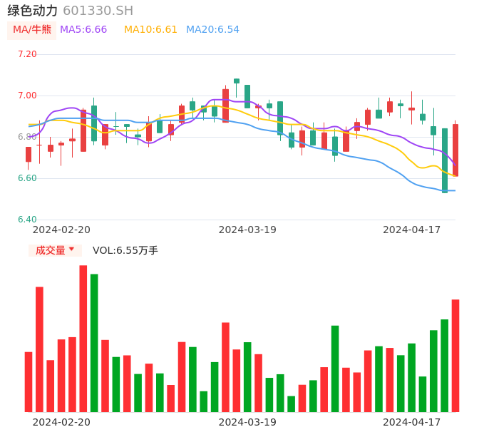 04月17日,绿色动力收报6.86,股价涨幅5.05%,成交金额4430.64万元,换手率0.66%。