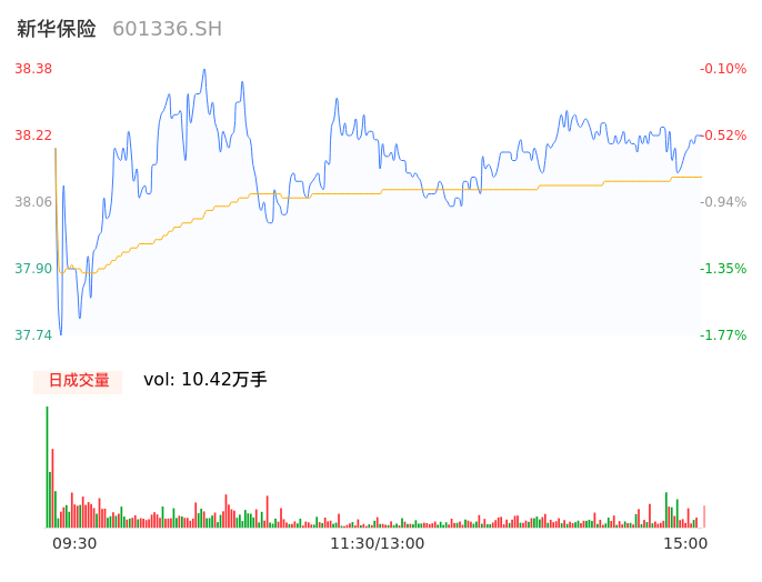 09月18日,新华保险收报38.25,股价涨幅-0.44%,成交金额3.97亿元,换手率0.50%。