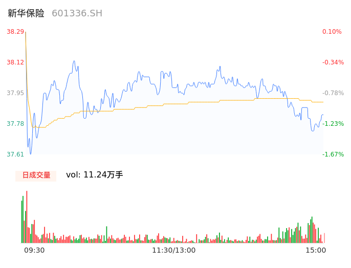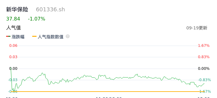 09月19日,新华保险收报37.84,股价涨幅-1.07%,成交金额4.26亿元,换手率0.54%。
