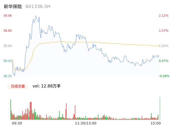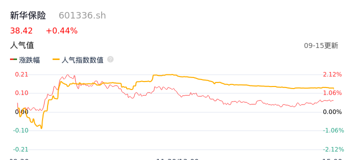 09月15日,新华保险收报38.42,股价涨幅0.44%,成交金额4.97亿元,换手率0.62%。