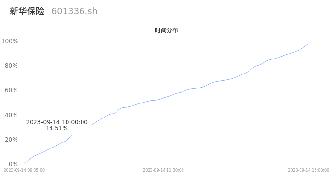 601336新华保险2023年09月14日成交13.13万手,成交金额5.03亿元,相较昨日缩量5.50万手,换手率0.63%,成交清淡。