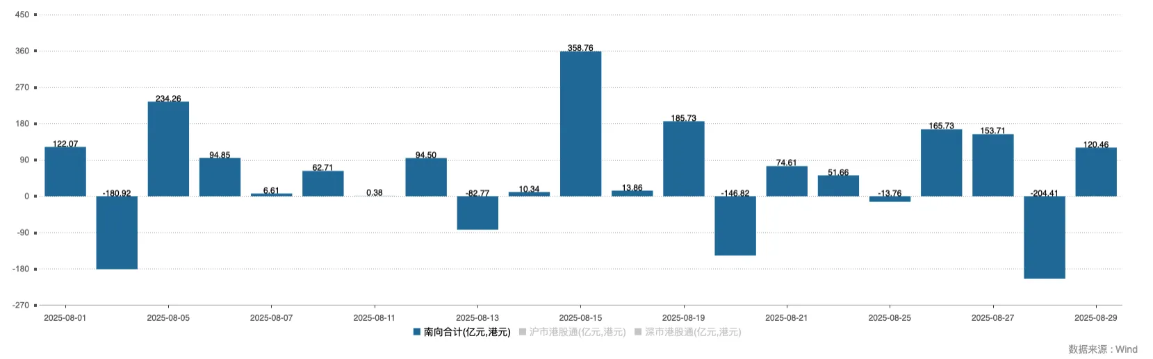 整体上看,8月南向资金仍保持较为踊跃的流入势头,但与7月行情不同的是,随着恒指行情高位震荡,资金面多空分歧开始显现。