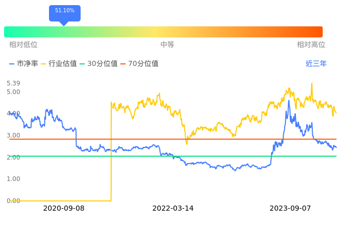 三六零当前市净率PB为2.38,在所属的软件开发中,市净率PB排17,前五名分别为中电兴发市净率1.07、天融信市净率1.16、理工能科市净率1.20、天源迪科市净率1.85、高新兴市净率2.09。三六零当前市净率PB为2.38,超过近3年51.10%的历史数据。