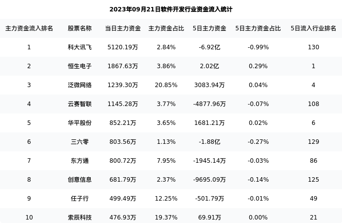 从主力资金流向来看,软件开发行业今日主力资金流入52.50亿元,在所有申万二级行业中排名:14/131。