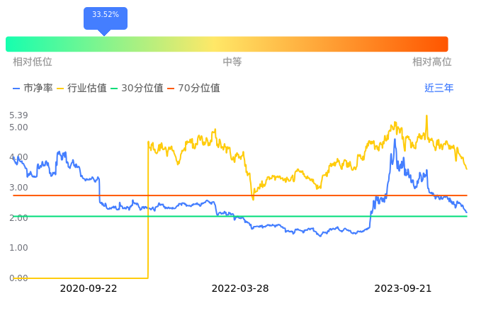 三六零当前市净率PB为2.18,在所属的软件开发中,市净率PB排16,前五名分别为中电兴发市净率1.02、天融信市净率1.11、理工能科市净率1.20、天源迪科市净率1.60、高新兴市净率1.98。三六零当前市净率PB为2.18,超过近3年33.52%的历史数据。